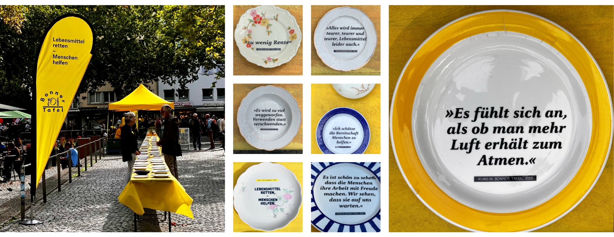 Besonders berührend war die Beteiligung unserer Kundinnen und Kunden. Sie hatten im Vorfeld Teller gespendet und uns mitgeteilt, was ihnen die Tafel bedeutet. Viele Antworten zeigen, wie wertvoll es ist, Orte der Begegnung und der Unterstützung zu schaffen.