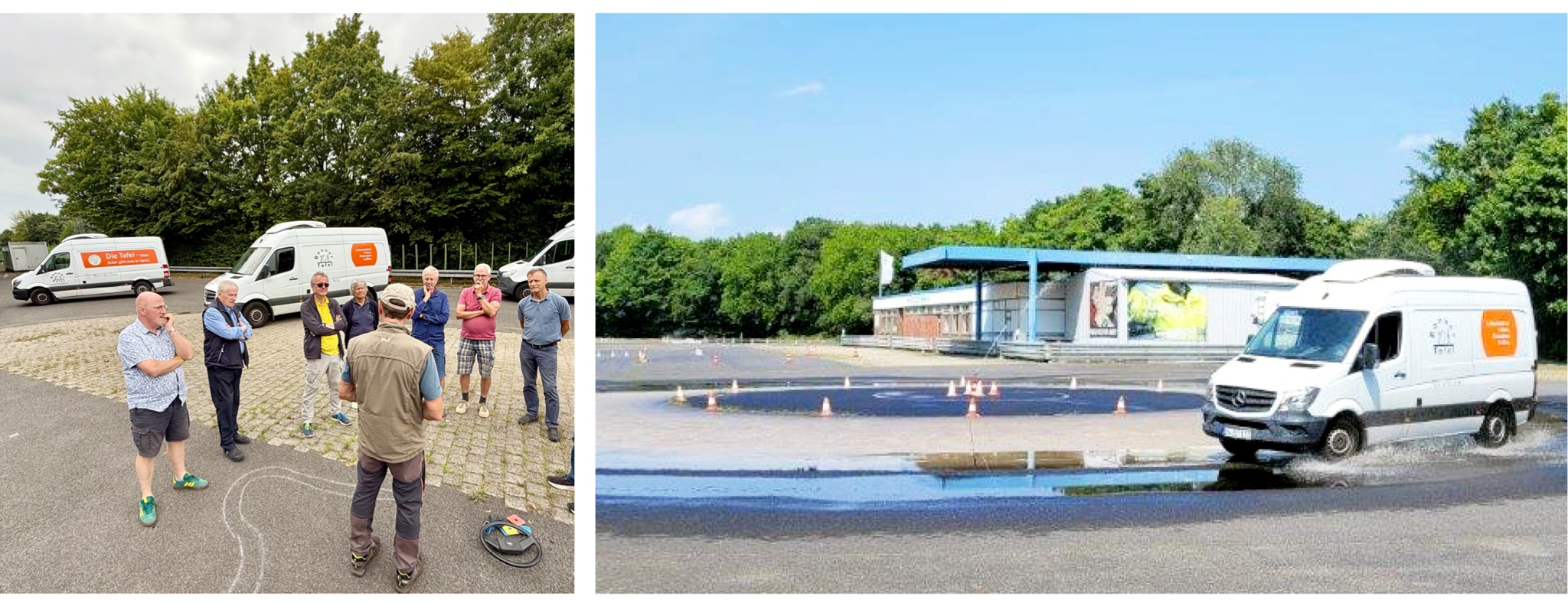 Im August nahmen in zwei Kontingenten insgesamt 18 unserer Fahrerinnen und Fahrer mit unseren Sprintern an einem ganztägigen Fahrsicherheitstraining für Transporter-Fahrer teil. Im Verkehrssicherheitszentrum des TÜV in Bornheim erfolgte zunächst im Rahmen eines kurzweiligen Unterrichtes die theoretische Vermittlung so unterschiedlicher Themen wie Fahrzeugtechnik, Wirksamkeit von Fahrassistenzsystemen, Einstellung einer optimalen Sitzposition, Ladungssicherung, Verkehrsrecht oder auch Fahrphysik. Der Schwerpunkt des Fahrsicherheitstrainings lag jedoch in der anschließenden praktischen Durchführung des Vermittelten in verschiedenen Verkehrs- und Fahrsituationen auf dem Gelände des TÜV. Bremsmanöver auf nasser Fahrbahn, Ausweichen vor plötzlich auftauchendem Hindernis auf nasser Straße, Notbremsverfahren, Slalomfahren und Beherrschen des Fahrzeuges in schnellen Kurvenfahren waren wesentliche Anteile des Trainings. Nach einem kurzweiligen und informativen Tag mit zahlreichen neuen Erkenntnissen und Erfahrungen für alle Teilnehmenden erfolgte die Rückfahrt zu unserer Geschäftsstelle.